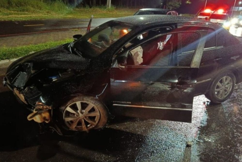 O acidente aconteceu por volta das 20h. O motorista conduzia um VW Voyage e colidiu no poste com a parte frontal do veículo, causando danos ao veículo e a estrutrutura. A PM também informou que chovia no momento do acidente e havia óleo na pista, porém não se sabe se esses elementos contribuíram para o acidente.